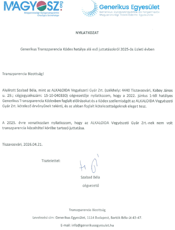 Transzparencia jelentés a 2025-ös évről